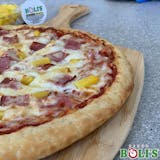 Secret recipe pizza sauce loaded with ham, pineapple chunks, and topped with an extra amount of blend of 100% fresh natural cheese.