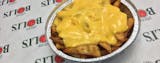 Crispy French fries topped with special blend pizza cheese, cheddar cheese, and bacon crumbles.