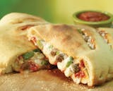 Secret recipe pizza sauce topped with grilled marinated chicken breast, fresh tomatoes, fresh green peppers, fresh onions, jalapeno peppers, and blend of 100% fresh natural cheeses, and sprinkled with fajita seasoning.