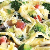 Sauteed broccoli, mushrooms, spinach, and diced tomatoes in our creamy Alfredo sauce, served over fettuccine, topped with shredded Parmesan cheese and fresh cut scallions.